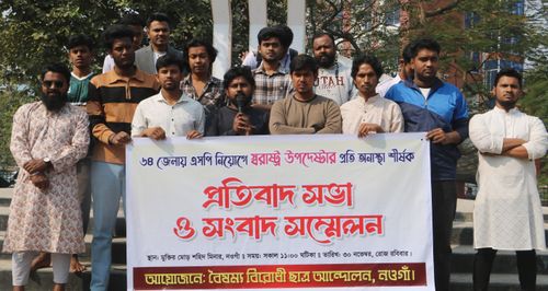 নওগাঁয় শিক্ষার্থীদের প্রতিবাদ ও সংবাদ সম্মেলন