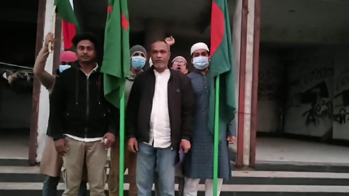 বৃহস্পতিবার ভোরে শহরের সরিষাহাটির মোড় জেলা আওয়ামী লীগের দলীয় কার্যালয়ের সামনে অবস্থান নিয়ে দলীয় ও জাতীয় পতাকা টানিয়ে রেখে সেখান থেকে সরে যায় তারা। পরে এ সংক্রান্ত একটি ভিডিও ফেইসবুকে ছড়িয়ে পড়লে ঘটনাস্থলে গিয়ে পতাকাগুলো জব্দ করে সদর থানা পুলিশ।