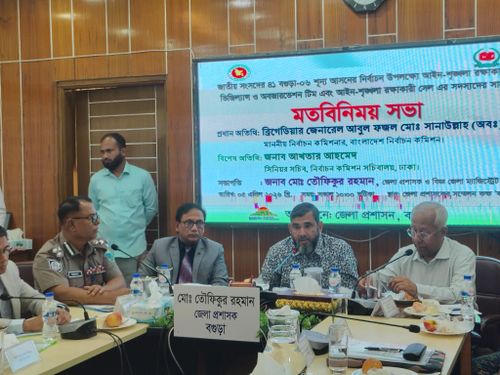 রোববার সকাল ১০টায় বগুড়া-৬ উপনির্বাচন উপলক্ষে আইনশৃঙ্খলা রক্ষাকারী বাহিনী, ভিজিল্যান্স ও অবজারভেশন টিম এবং সংশ্লিষ্ট সেলের সদস্যদের সঙ্গে মতবিনিময় সভায় প্রধান অতিথির বক্তব্যে তিনি এসব কথা বলেন।